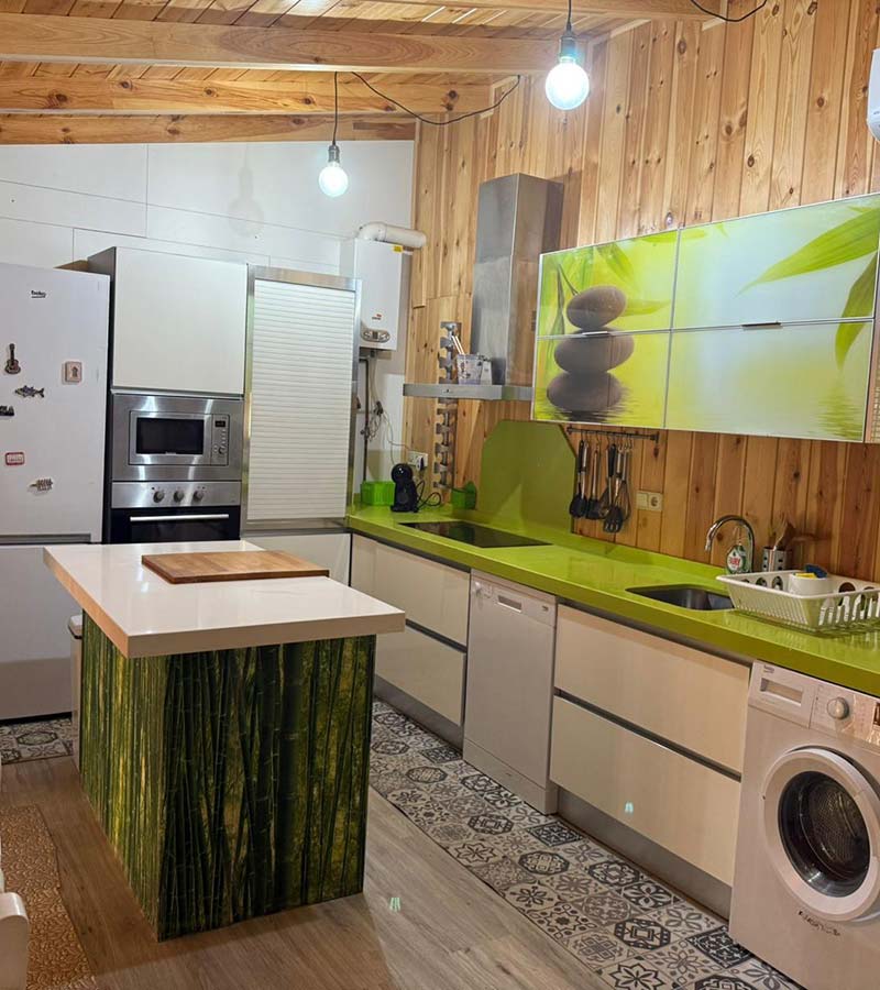 Completamente equipada con lavavajillas, dos neveras, congelador, cafetera y todo el menaje necesario, tendrás todo lo que puedas necesitar para disfrutar de tus comidas sin preocuparte por nada.